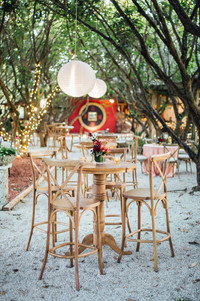 Imagine a spread of delectable desserts arrayed on varying levels of cocktail tables. This approach not only adds visual interest but allows guests to engage with the offerings in a dynamic way. By mixing and matching table heights, your sweet treats become an interactive experience rather than just a static display. This is why we are the only wedding rental vendor in South Florida offering both high and low wooden cocktail tables because we believe different heights gives our rentals versatility and elevates the overall event decor!